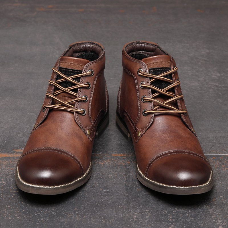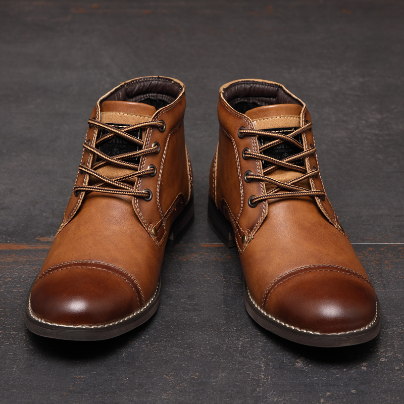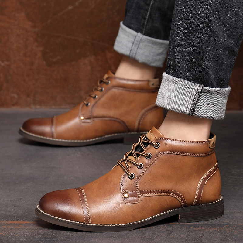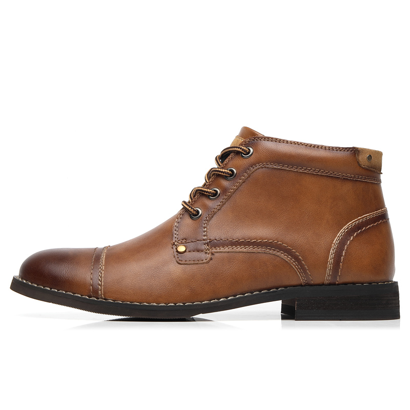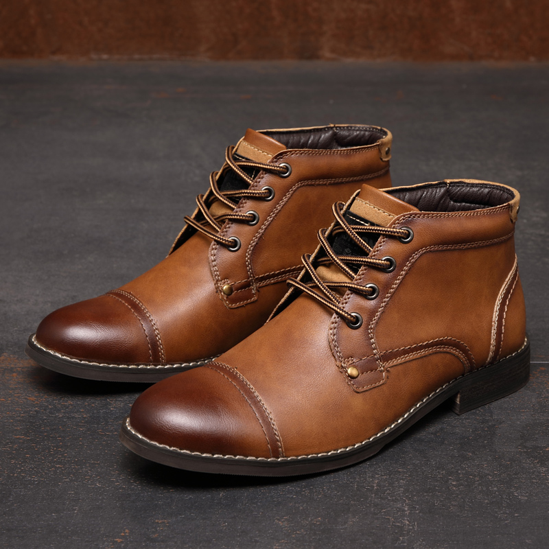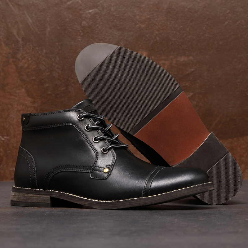 Men British Style Cap Toe Leather Comfy Slip Resistant Dress Ankle Boots