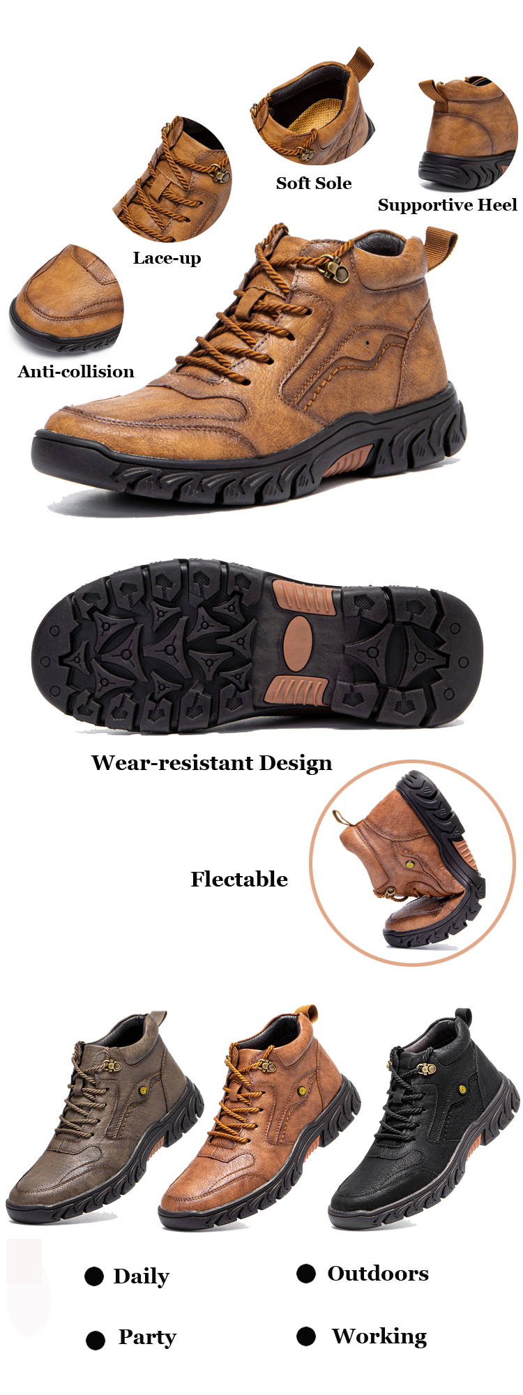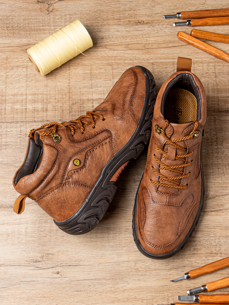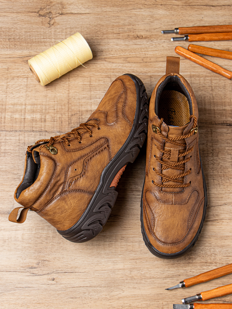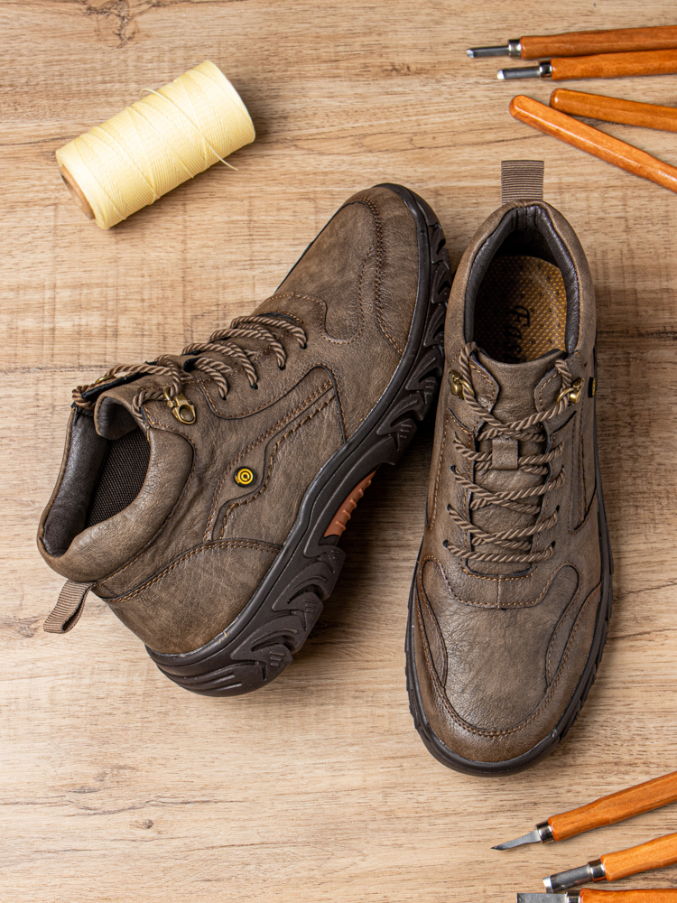 Men Hand Stitching Microfiber Leather Non Slip Soft Outdoor Casual Ankle Boots