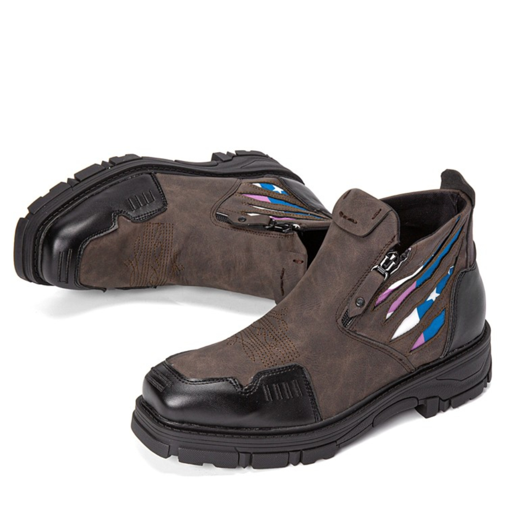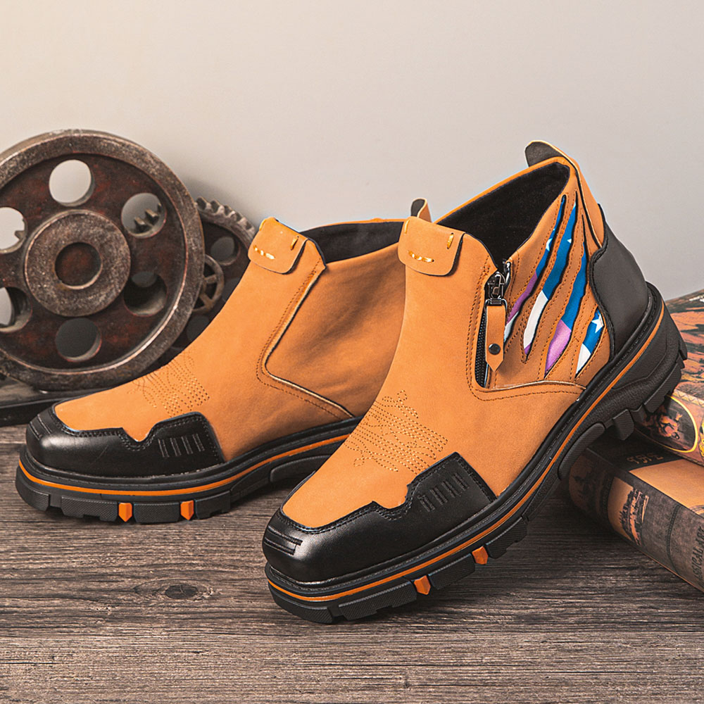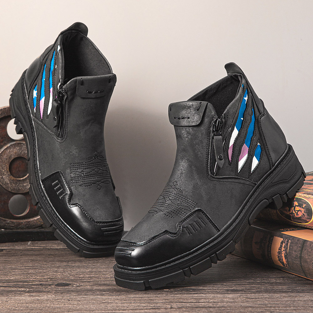 Men Leather Breathable Soft Sole Comfy Platform Zipper Casual Ankle Boots