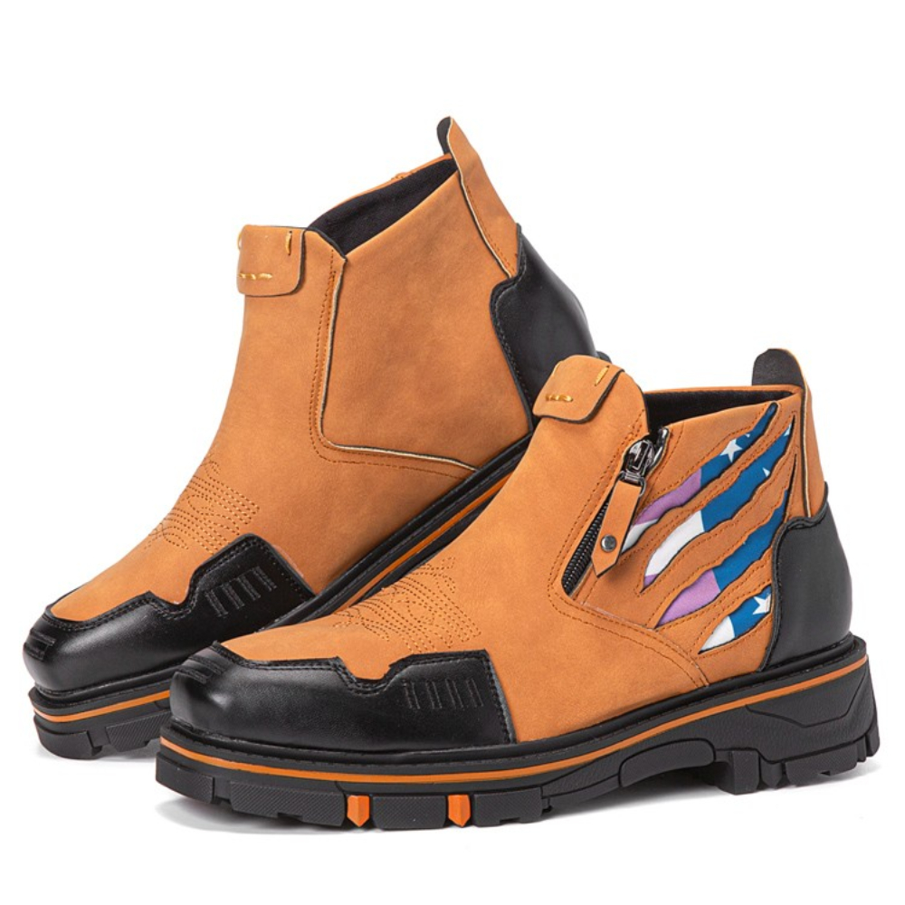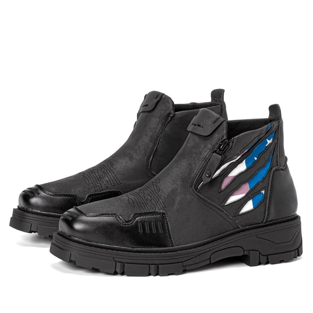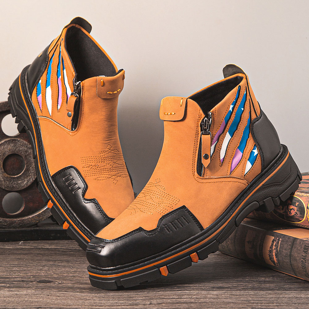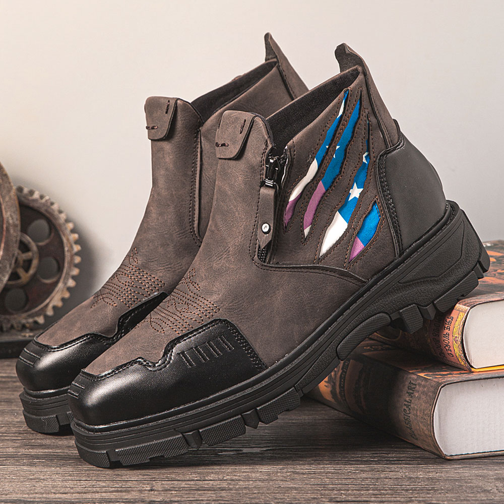 Men Leather Breathable Soft Sole Comfy Platform Zipper Casual Ankle Boots