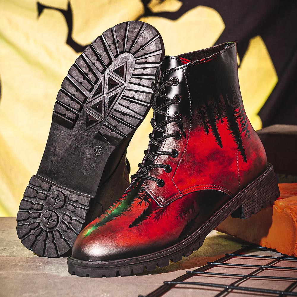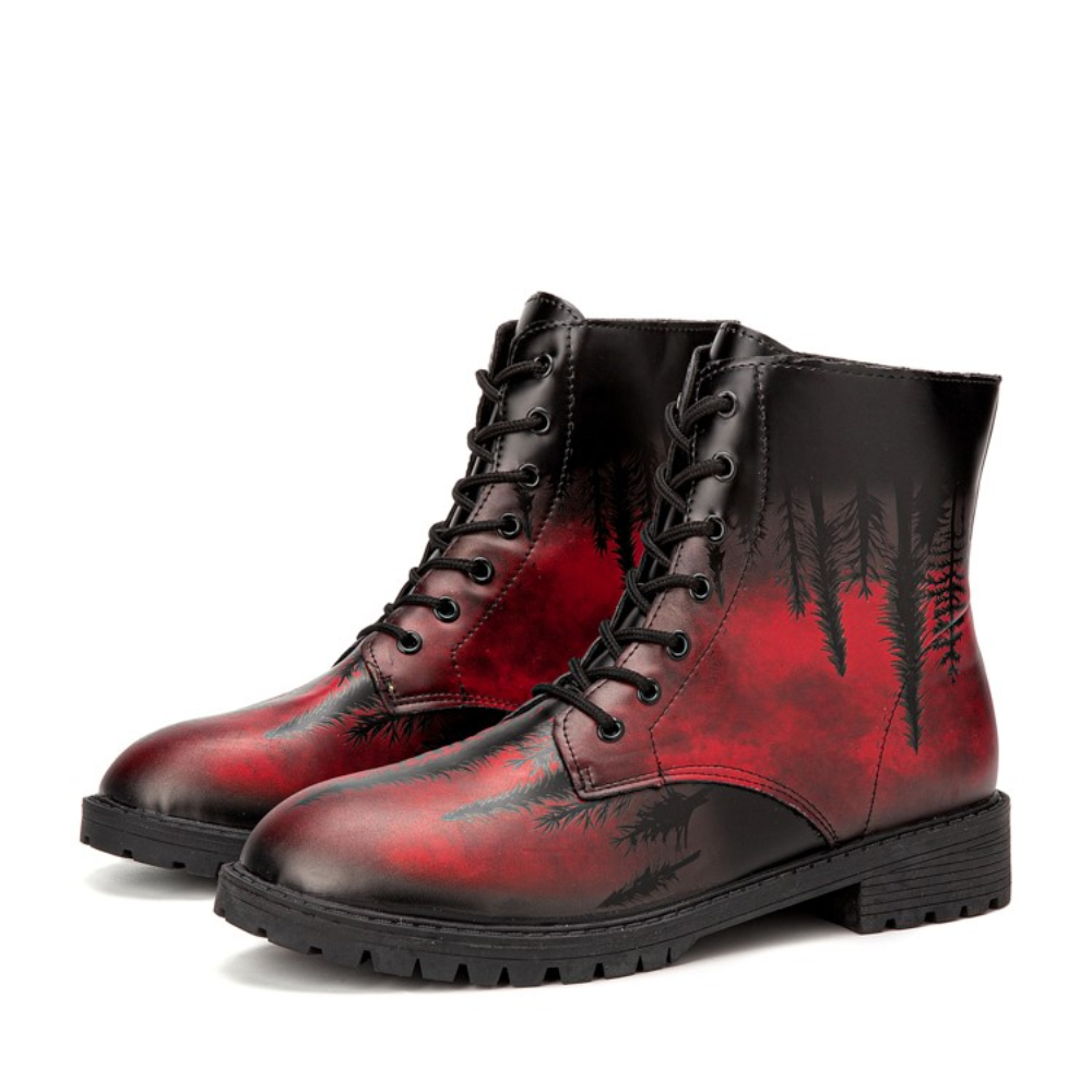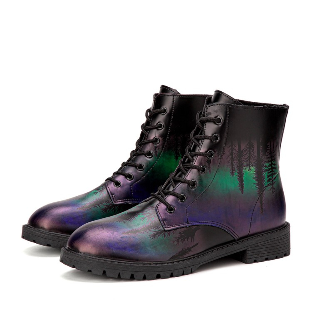 Men Leather Halloween Printing Soft Sole Round Toe Comfy Colorful Casual Martin Boots