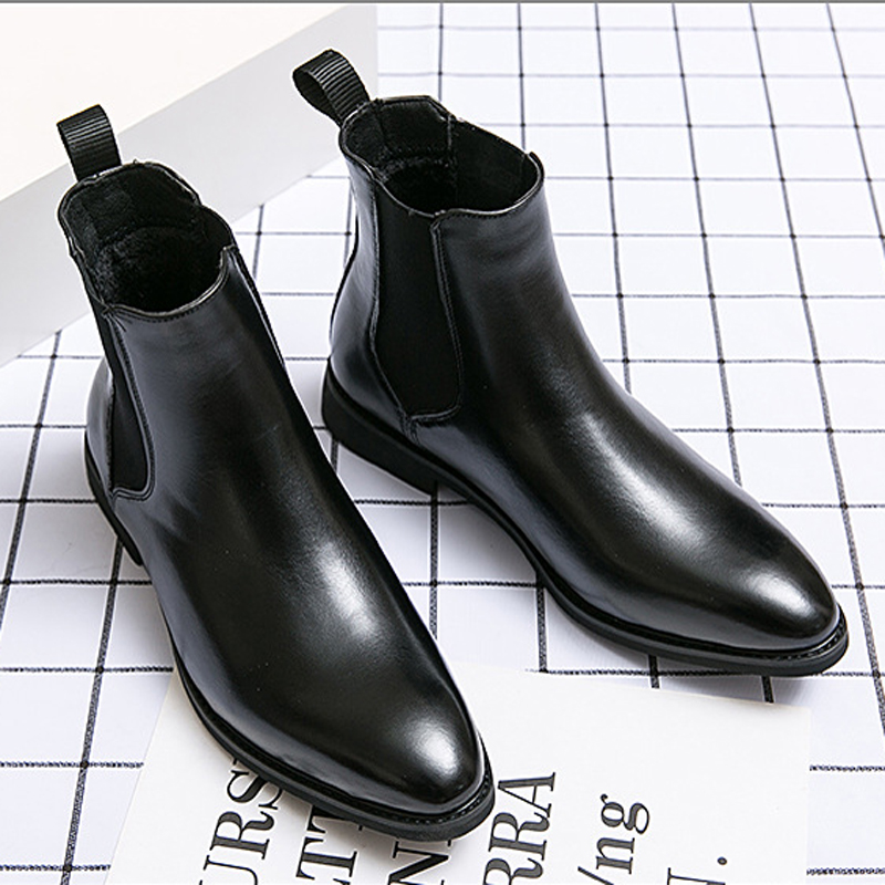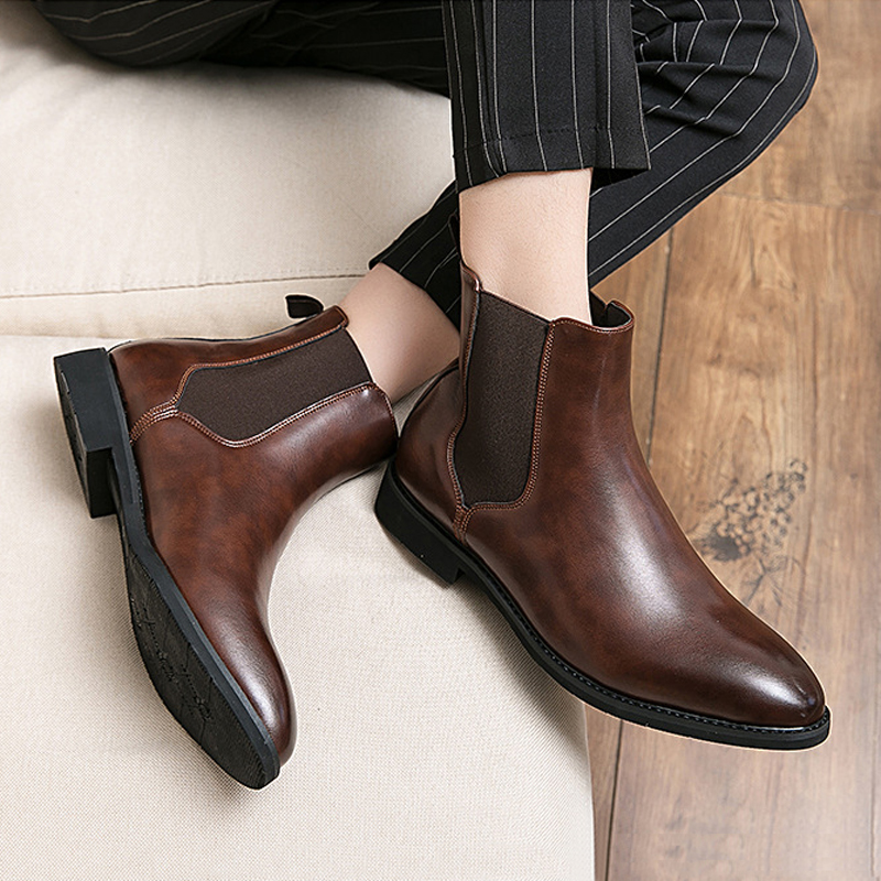 Men Leather Pointy Toe Soft Sole Trendy Slip On Casual Chelsea Boots