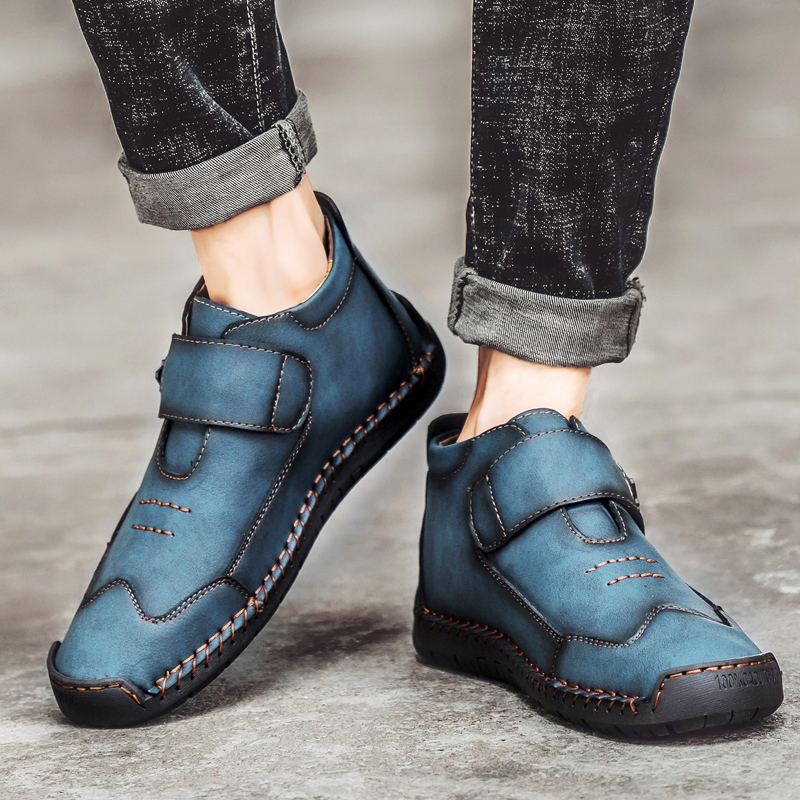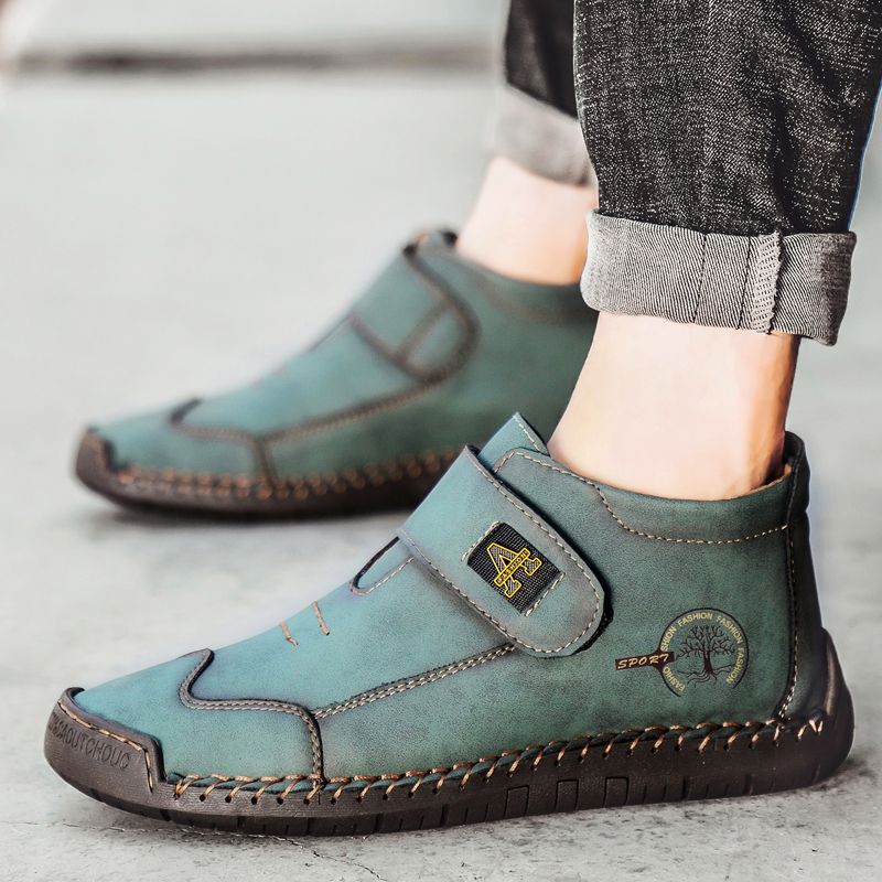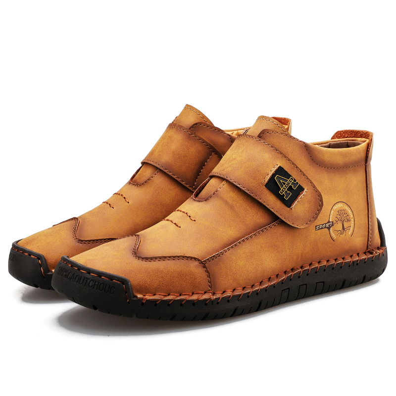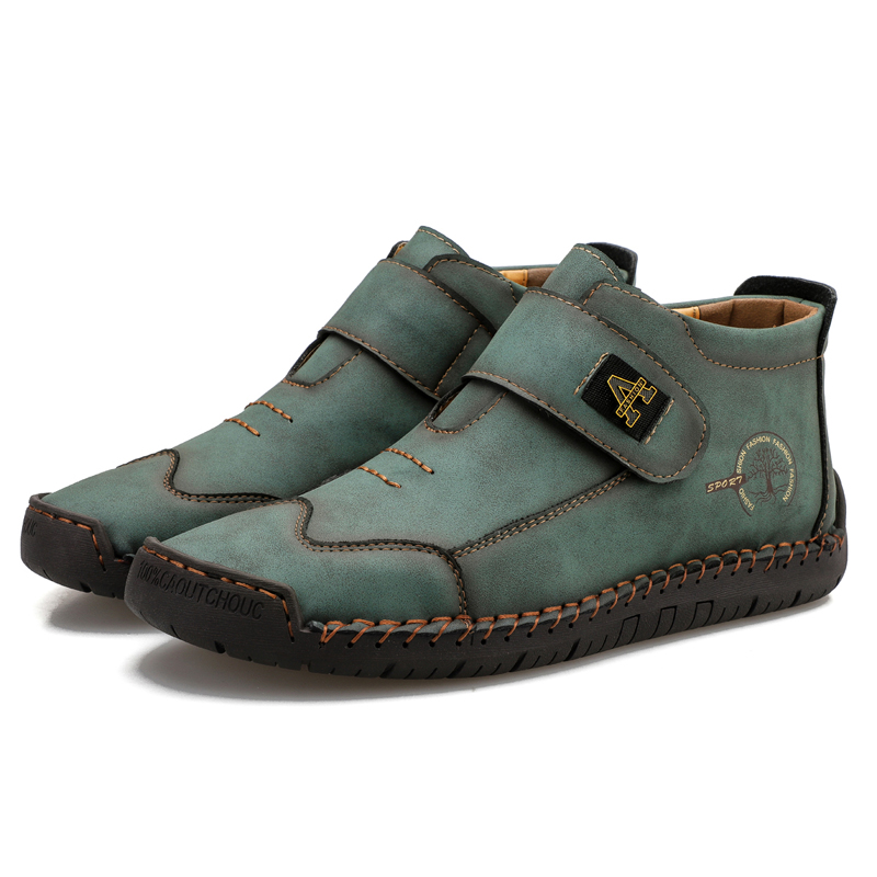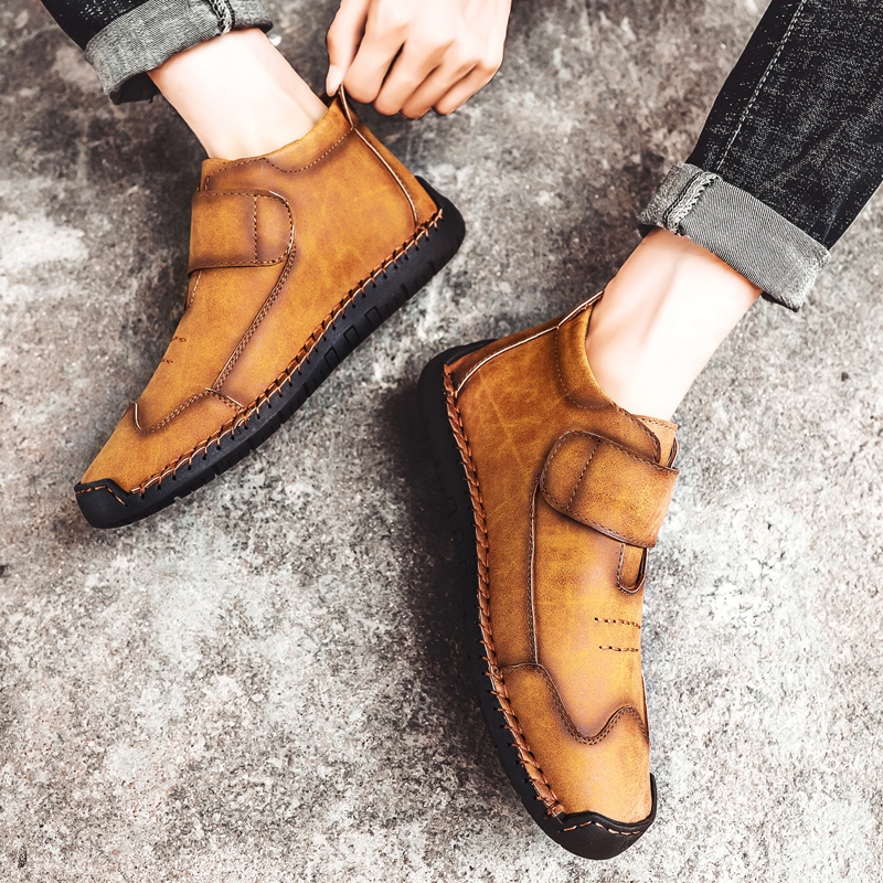 Men Microfiber Leather Hand Stitching Breathable Soft Sole Casual Martin Ankle Boots