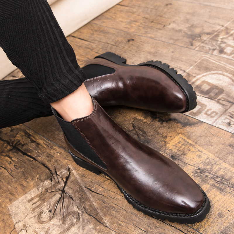 Men Vintage Elastic Slip-on Business Leather Ankle Chelsea Boots