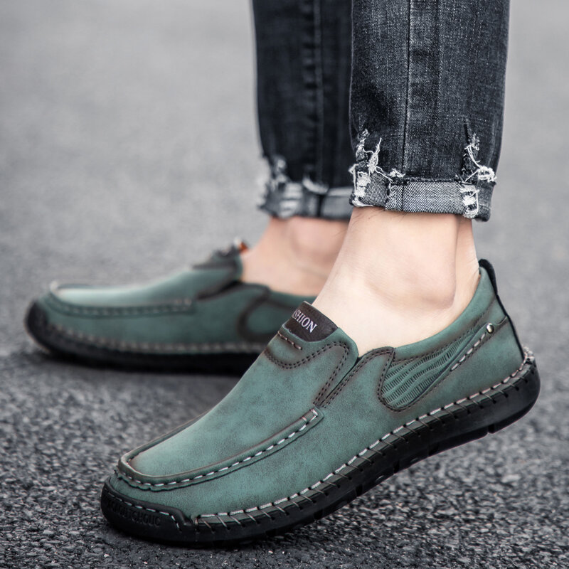 Men Hand Stitching Microfiber Leather Slip Resistant Slip On Loafers