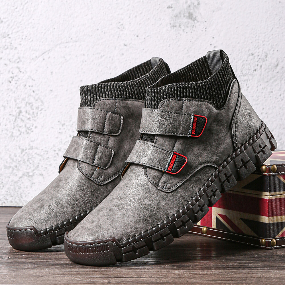 Men Non-slip Wear Resistant Hook Loop Warm High-top Casual Hand Stitching Ankle Boots
