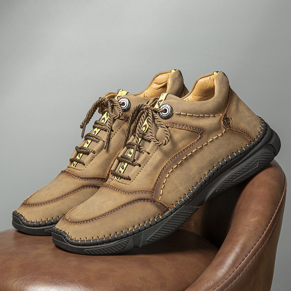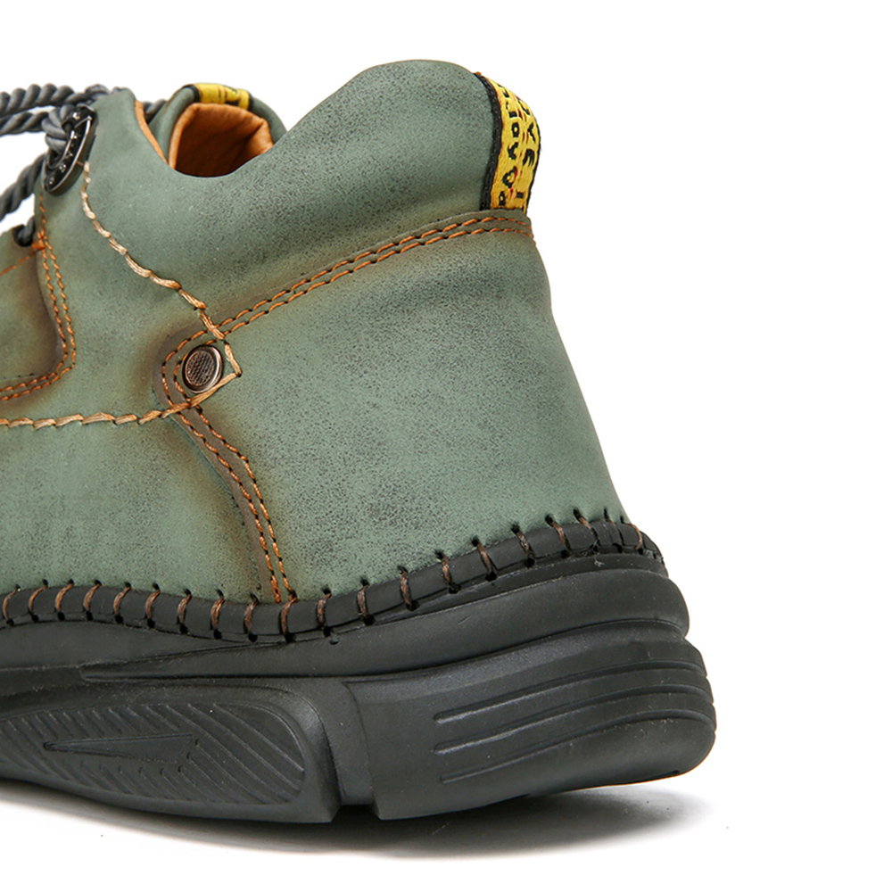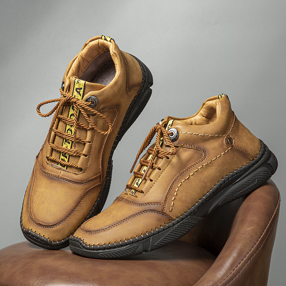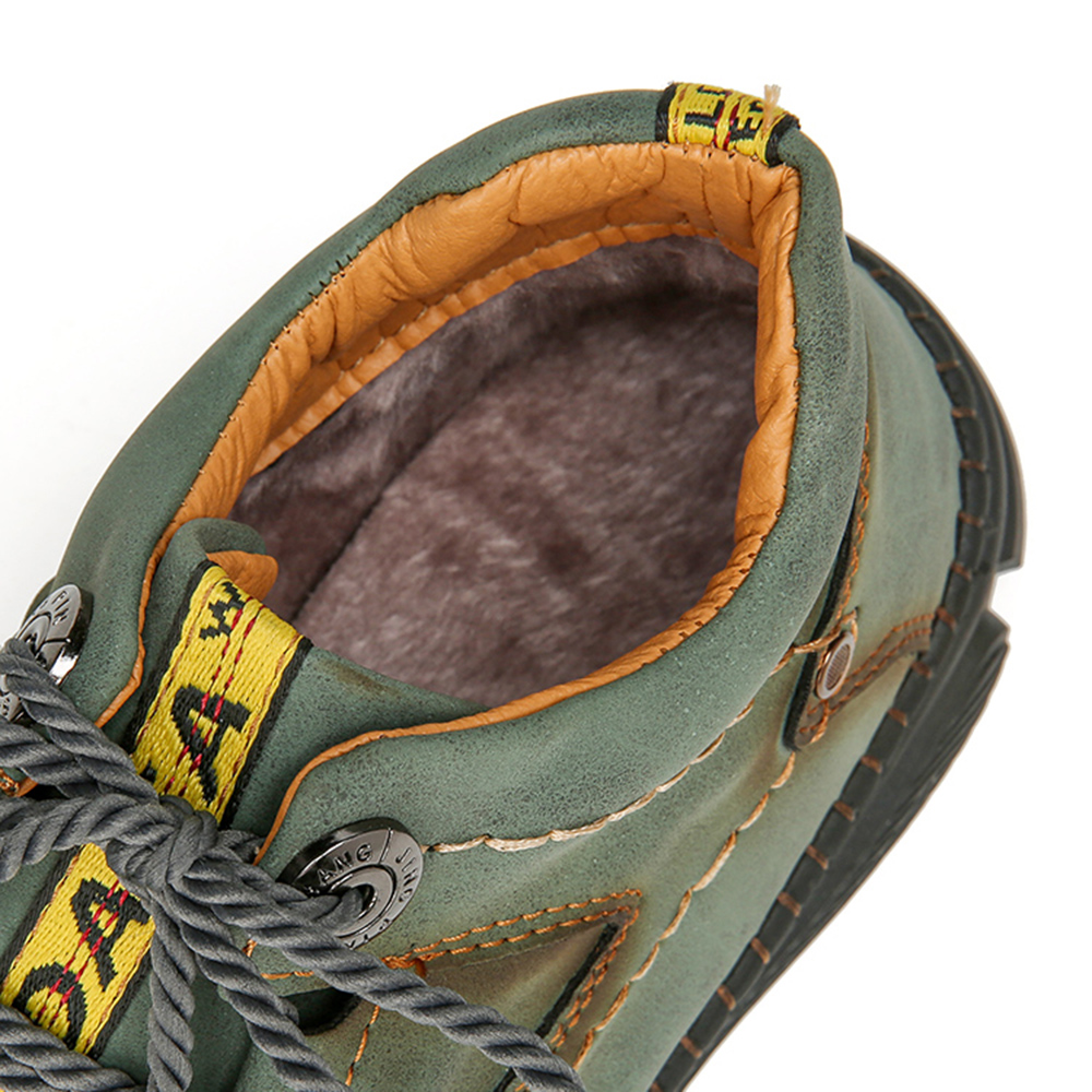 Men Hand Stitching Microfiber Leather Non Slip Warm Ankle Boots