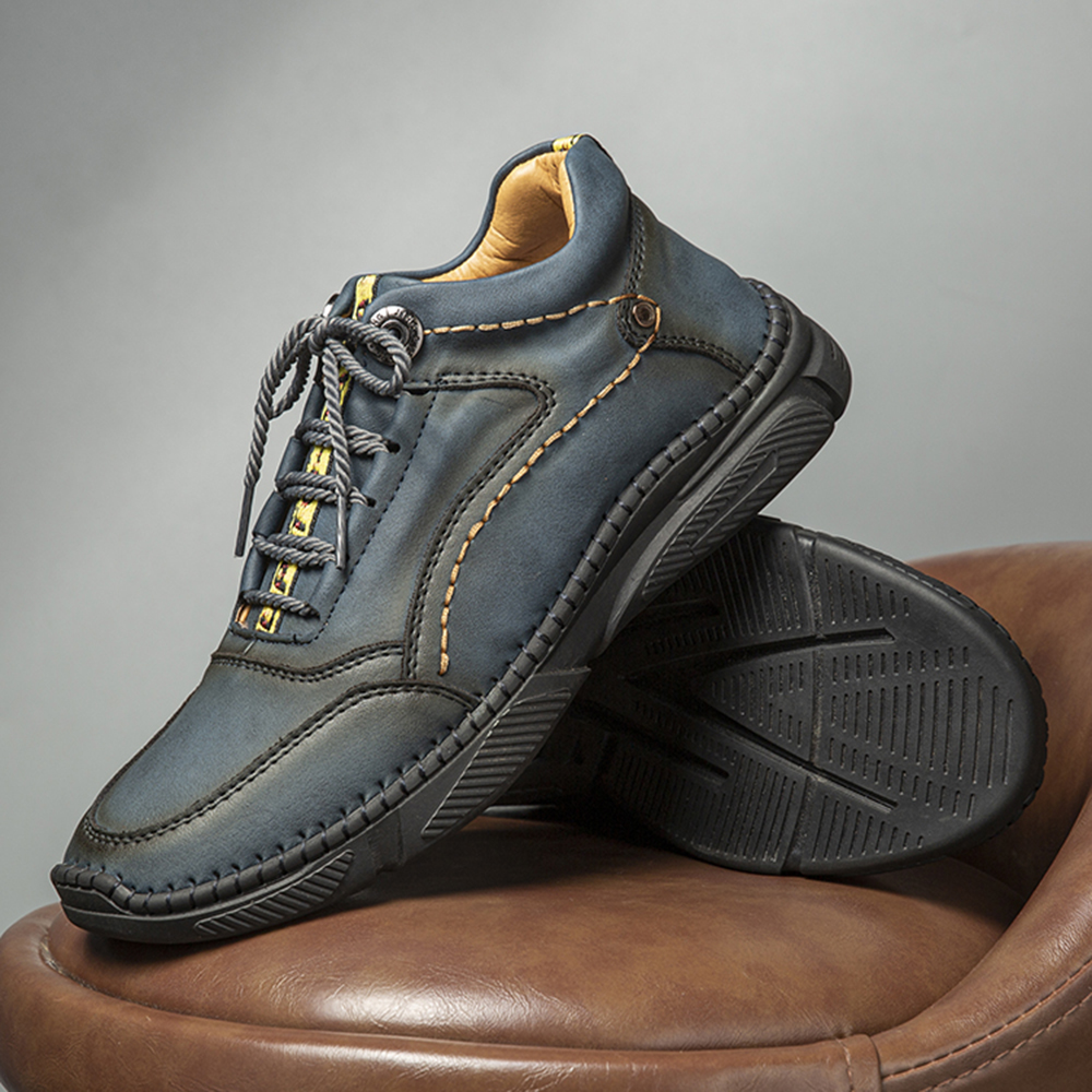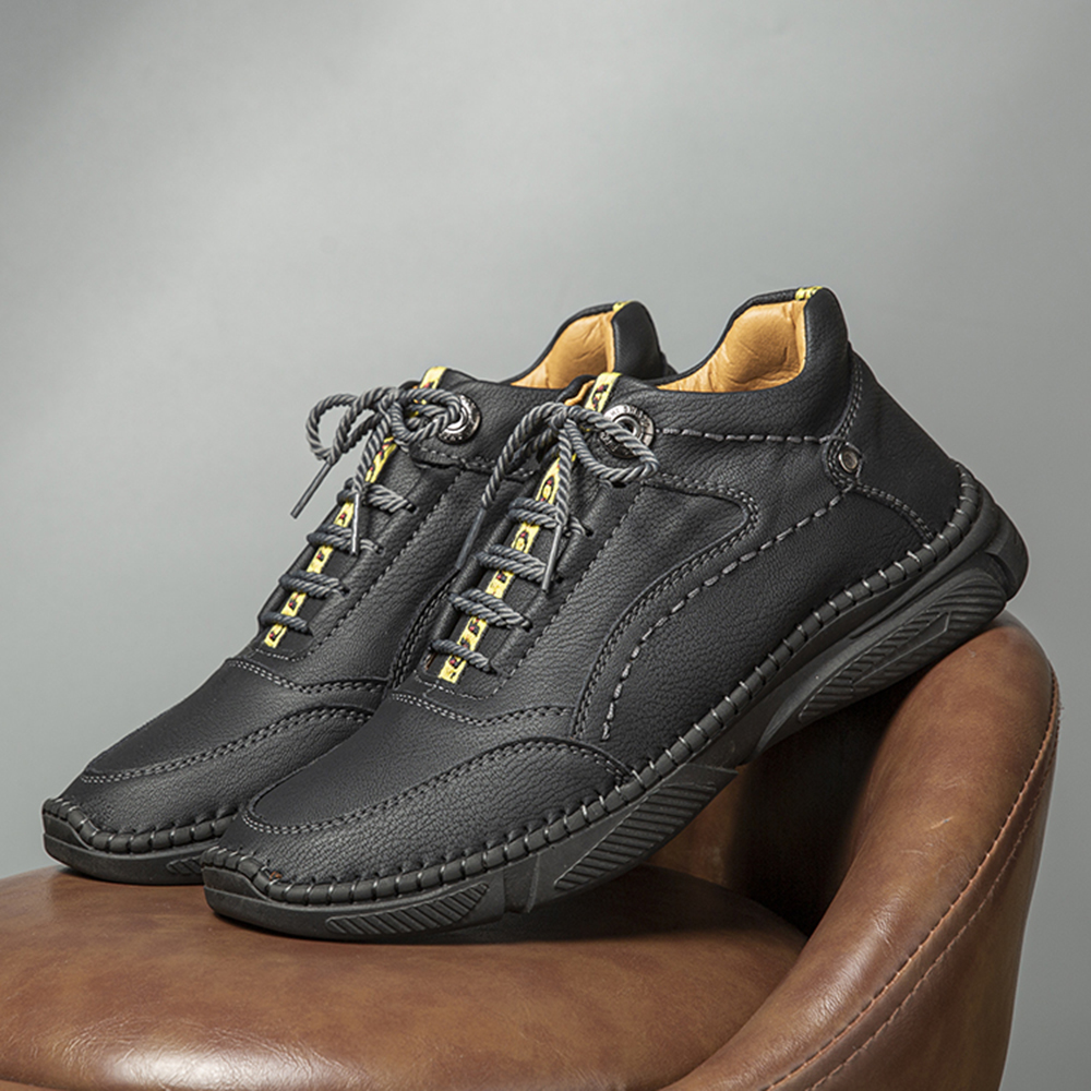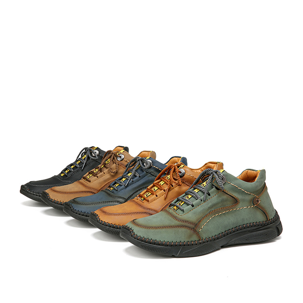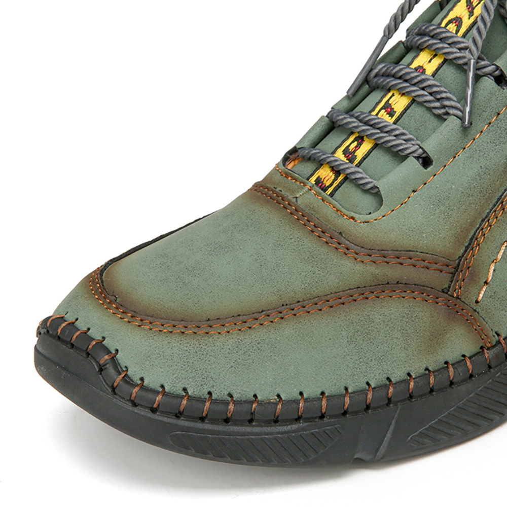 Men Hand Stitching Microfiber Leather Non Slip Warm Ankle Boots