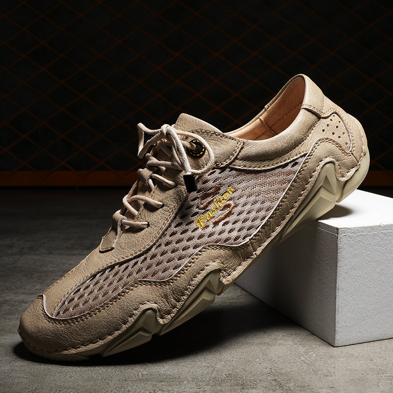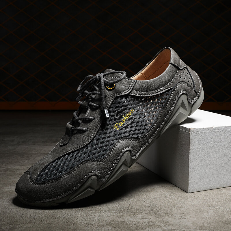 Men Mesh Breathable Non Slip Comfy Lace Up Elastic Band Casual Shoes