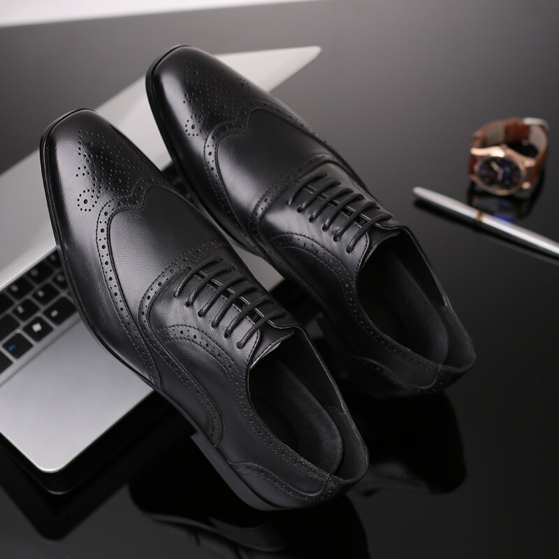 Men Microfiber Breathable Soft Bottom Pointed Toe Vintage Plaid Lace Up Casual Business Shoes