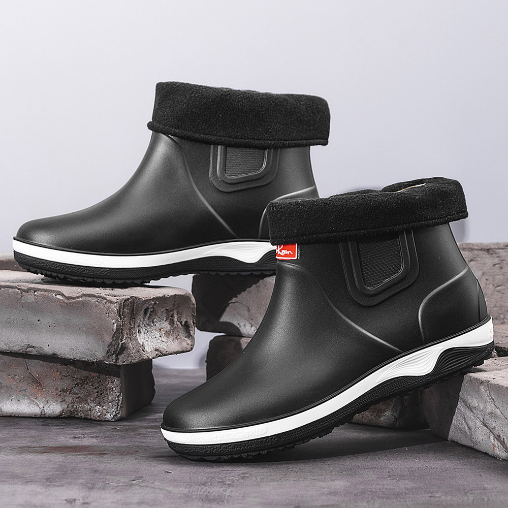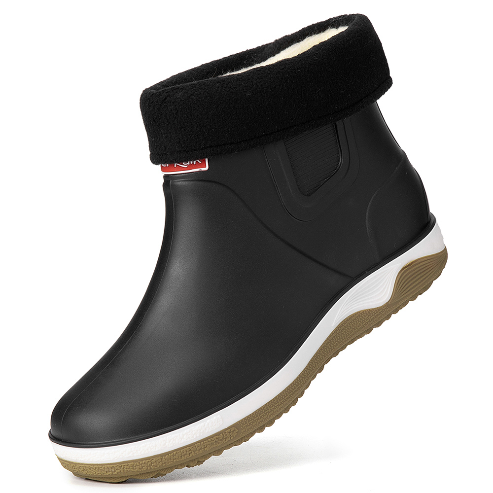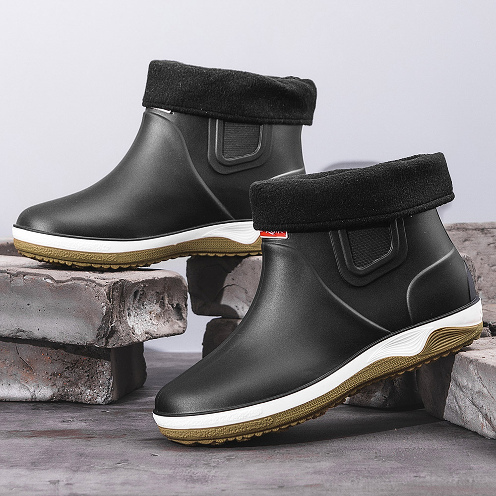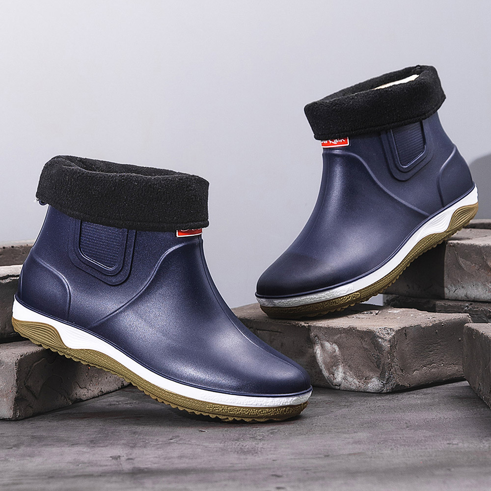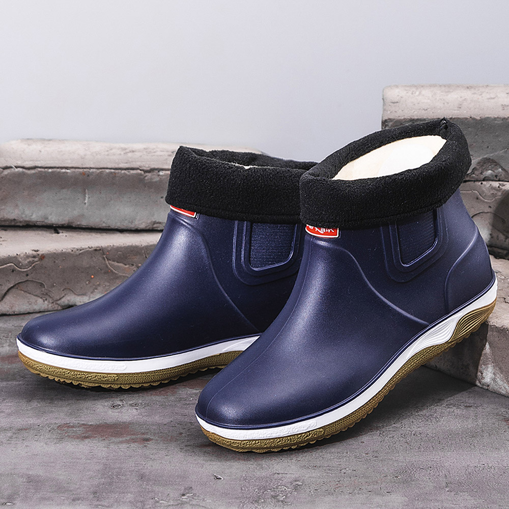 Men Warm Plush Lining Soft Sole Slip Resistant Slip-On Rain Boots