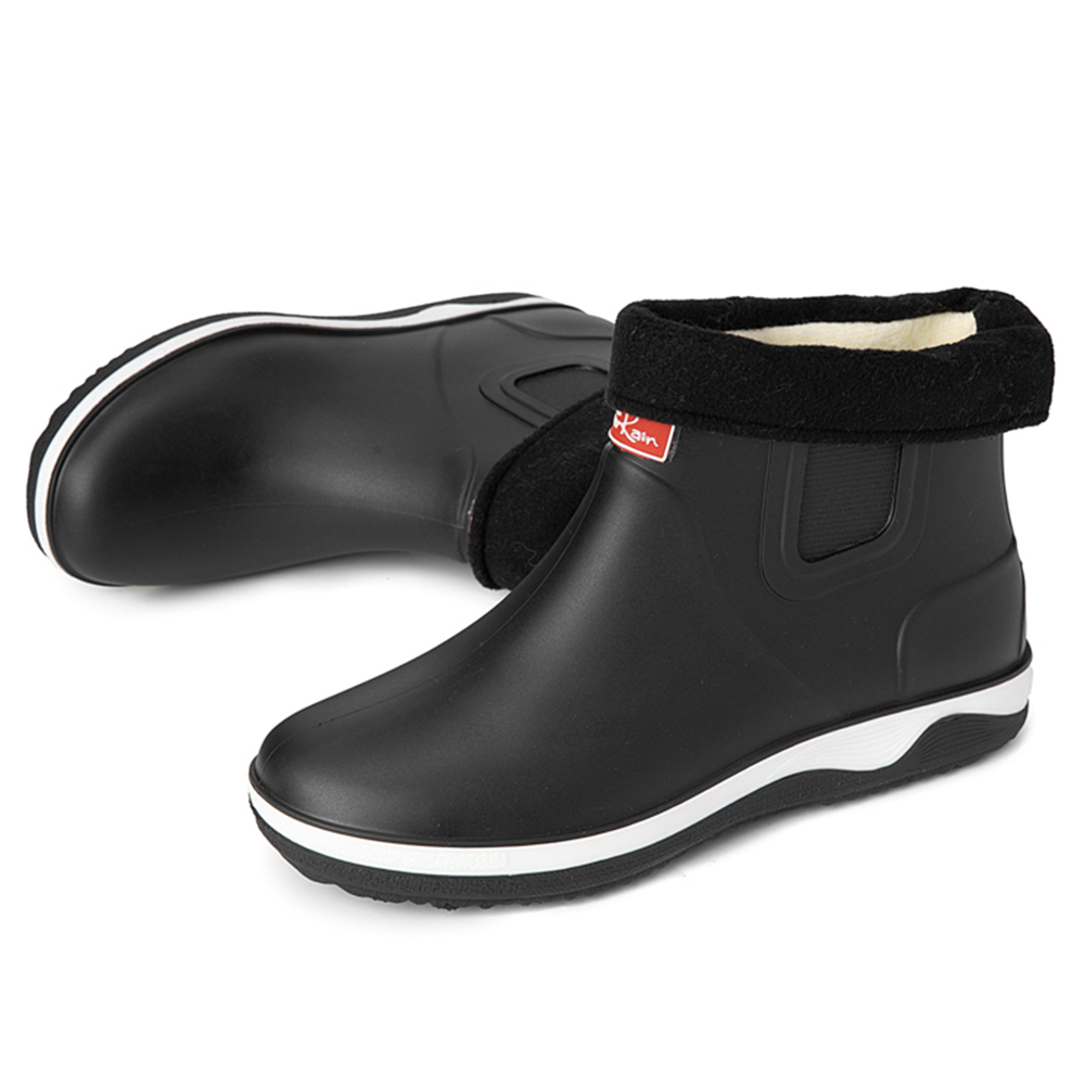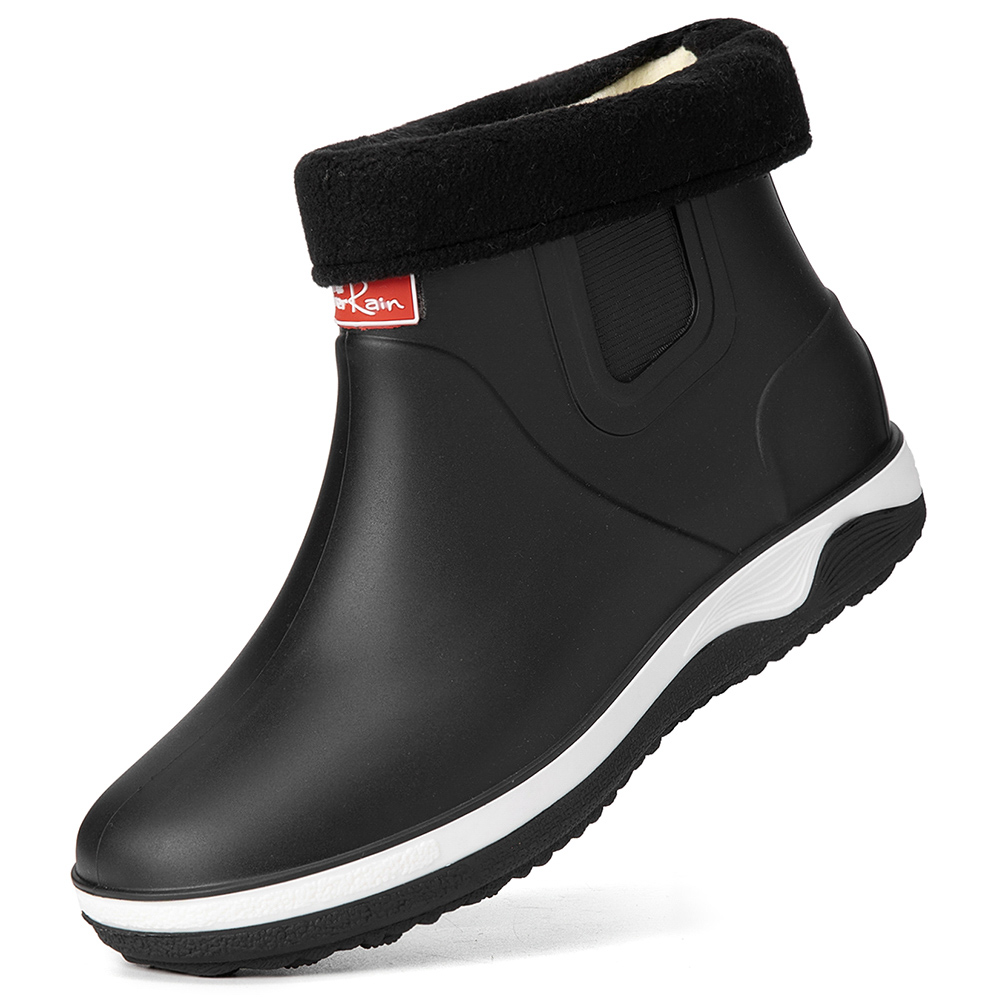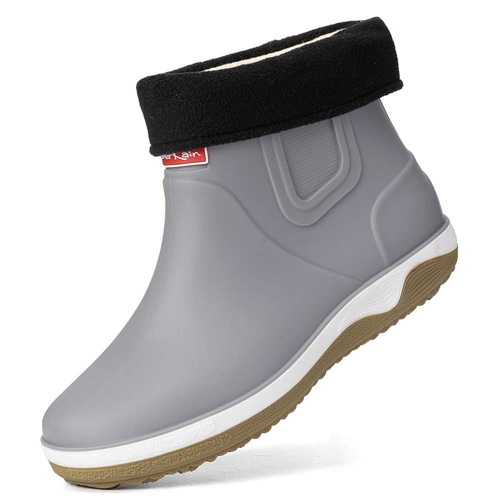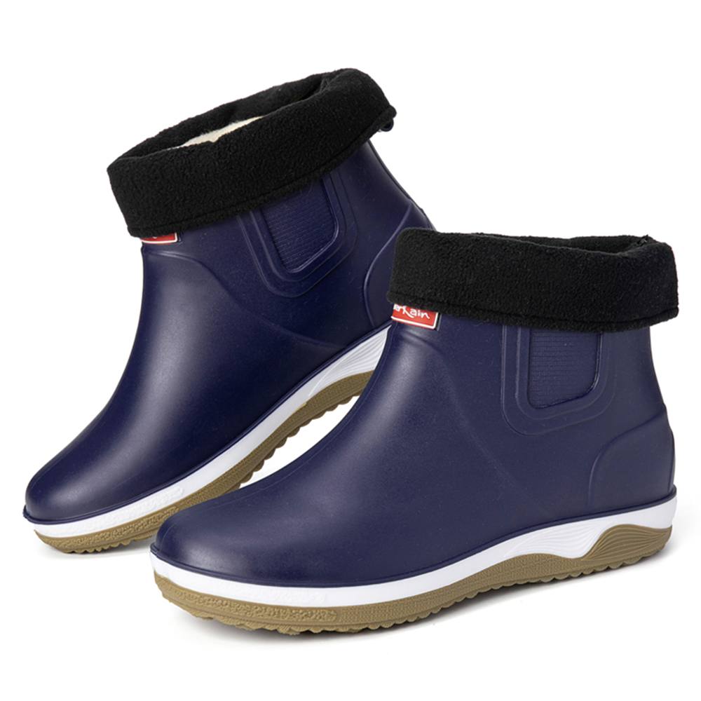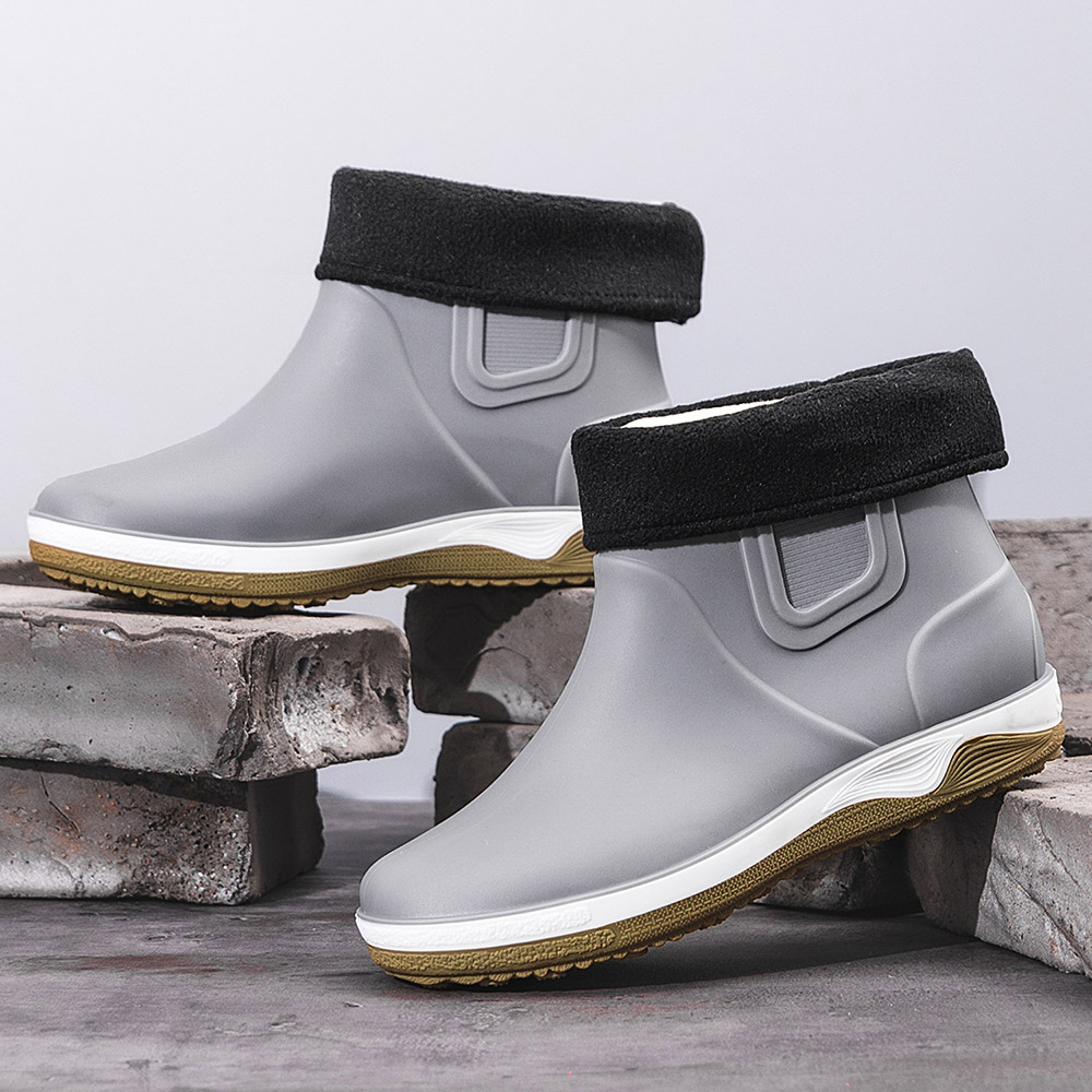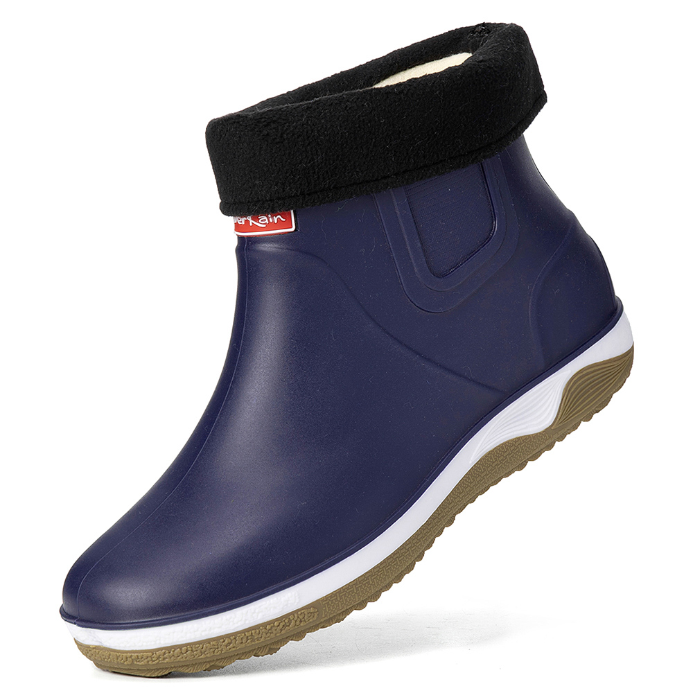 Men Warm Plush Lining Soft Sole Slip Resistant Slip-On Rain Boots